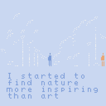 Oh wow, that was unexpected. Thank you! I've combined different tools for this, from the amazing lvllvl textmode art editor to bipsi (a variant of bitsy's constraints, in an easier package IMHO), all thanks to a custom-coded importer. I like when my coding skills can me serve my art and that's exactly why I love these mini jams! 😅 I'm not much a gamer, much more of artist who likes to sometimes use game tools as a recreation from my usual artwork. Maybe these tools will inspire you too!